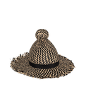 Black and beige straw zigzag-woven design pompom-detail grosgrain band frayed brim.