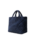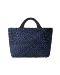 The St. Barths Medium Tote Double Weave is a relaxed take on our original silhouette. Handwoven from doubled strands of navy blue neoprene with indigo denim, lightweight, comfortable to carry, and effortlessly stylish, this medium tote bag is a warm-weather necessity.