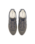 This grey and navy blue leather Outline sneaker is characterized by a grained finish and a chunky yet lightweight running sole that ensures all-terrain grip. Bally logos on the side of the heel counter and on the tongue create a signature touch. Round laces complete the look.