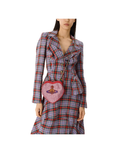 The Belle Heart Frame purse features a heart-shaped silhouette, a nod to Vivienne’s affection for humanity and the planet, complete with leather trims and our signature silver-tone hardware. Embellished with rows of shimmering diamanté gemstones, the design recalls the opulence of grand hotel interiors.
