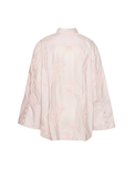 Flower Oversized Shirt Light Pink is designed with an Oversized silhouette and long, wide sleeves. The shirt features a classic collar, front button closure, and embroidered floral detailing across the fabric. Made from organic cotton with polyester embroidery. It can be matched with the Flower Maxi Skirt Light Pink for a coordinated look.