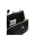 The Granny Frame purse features a polished metal framework, adorned with a secure kiss-lock clasp, recalling the designs of early 20th-century coin purses. The piece offers a soft PU leather finish with grained-effect embossing across the design, adorned with the house’s orb motif, symbolising tradition, and encircled by the celestial rings of Saturn, representing the future.