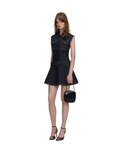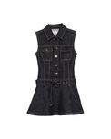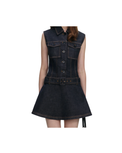 A preppy silhouette comes with street savvy flair in this denim mini dress. Its face-framing collar and belted drop waist frame the form above a flared skirt. Wear with sneakers and heels alike.
