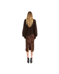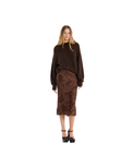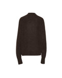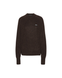 Light Knit Logo Sweater Dark Brown is a long-sleeved knit sweater with a relaxed, oversized silhouette. It features a round neckline, ribbed cuffs and hem, and a small ROTATE logo patch on the chest. The soft texture and slightly sheer finish highlight the airy quality of the mohair and wool blend.