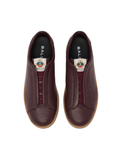 This Retro Crest sneaker in burgundy grained leather is characterized by a sleek slip-on design, with tonal elasticated laces set between the minimalist eyestay. A Bally Crest on the tongue and a debossed logo ensure an iconic note.