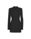 Suiting Ls Mini Dress Black is a fitted mini dress with long sleeves, broad shoulders, and a high neckline. The dress features vertical seams that enhance the silhouette and add a structured finish. The dress is lined.