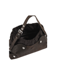 - Adjustable shoulder strap with punched eyelets and metal buckle