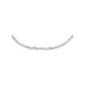 The Millicent choker features a sleek curb chain, with 'Vivienne Westwood' and 'Mayfair' subtly incorporated into the design, paying tribute to the house’s flagship boutique in Mayfair. Finished in silver-tone plating, the piece includes a lobster clasp closure and an extender chain for an adjustable, customisable fit.