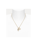 Our Lucille Pendant necklace is characterised by a delicate acorn charm, coated in a lustrous pearl finish and embellished with pavé cubic zirconia crystals. Suspended from a classic gold-tone trace chain, the design reinterprets the house’s signature dangling orb, also detailed with a pearlescent coating.