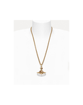 Our New Small Orb Pendant necklace features a distinct three-dimensional orb with a clear sphere glass ball at its center, inspired by the house's iconic orb-shaped motif, recalling Vivienne's vision of blending tradition with the future. Encrusted with an array of multi-colored crystals, the necklace is completed with an embossed tag at the fastening.