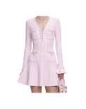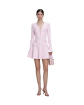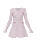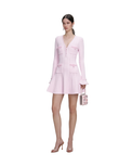 Pointelle knit gives this baby pink mini — with its elegant pearl trims and subtly flared skirt — a sculpted fit and everyday ease. Add brogues and our statement earrings for desk-to-dinner chic.