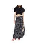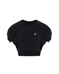 The cropped top with a logo patch signed by Vivienne Westwood is a sophisticated choice for lovers of bold elegance. The black color perfectly complements the carefully designed, boxy silhouette in a crop top length, subtly accentuating the waist. The puffed, short sleeves with emphasized volume give the figure a modern, fashionable touch, while the classic, rounded neckline highlights the timeless character of the design.