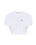 This model is crafted from the highest quality cotton; soft, densely woven with a subtle sheen, ensuring comfort and excellent shape retention. The smooth white fabric stands out for its precise finishing, and the look is completed by a colorful, embroidered patch with the designer's logo placed on the left chest—a symbol of the unique style and rebellious spirit of the Vivienne Westwood brand.