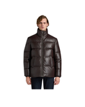 This puffer jacket is made from soft nappa lambskin in a rich Ebano hue. Horizontal quilting holds real down for ultimate warmth.