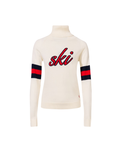 The Neve sweater is a fitted style with a cosy rib-knit turtleneck. Featuring a 'Ski' intarsia design on the centre-front. Crafted from extra fine merino wool, it's the perfect luxury layer to pair with your sleek Aurora flare pants.
