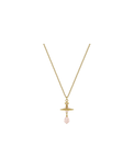 The Aleksa Pendant necklace revives the classic three-dimensional orb motif, embodying the ethos of launching the past into the future. The pendant is adorned with glistening crystals and descends into a baroque glass-based pearl detail, finished in polished, gold-toned plating.
