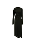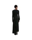 Discreet but directional talking points elevate the Long Sleeve Draped Jersey Midi Dress from a traditional LBD to a contemporary classic. Distinguished by its draped neckline with cord piping, it also features elegant draping at the sleeves and back skirt. The waistline is defined by tactile pleats, while an asymmetric hemline and sleeves add modern flair.