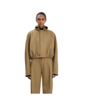 A runway highlight, the Oversized Roll Neck Bomber Jacket is characterised by this season’s signature roll-neck design. A sculptural feature, it creates a contemporary contrast with the otherwise relaxed, oversized silhouette, while its softly rounded edges bring a feminine sensibility to the look. Crafted from a heavy gabardine, it has a hip-length hemline, side-seam pockets and an elasticated waistband.
