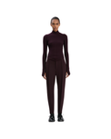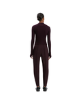 Elevating athleisure wear design codes, the Sculptural Trouser in Deep Mahogany is a formal trouser with equestrian stirrup detail, offering a contemporary twist on traditional tailoring. Adjustable to allow for different leg lengths, the stirrup is elasticated for absolute comfort. A double wool crepe fabrication and front and back darts give the trouser its streamlined cut, which is enhanced by slick side seam pockets.