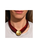 With its sculptural look, the Garence torque combines two horn-shaped pieces that are decidedly contemporary, framing a central cabochon like a luminous talisman. Between organic material and precious note, wear it as a statement piece to enhance your turtlenecks or necklines, and assert a bold silhouette. A resin necklace powerful for a graphic and assertive style.