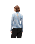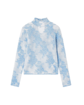 This turtleneck features a sheer flower print, high collar and long sleeves.